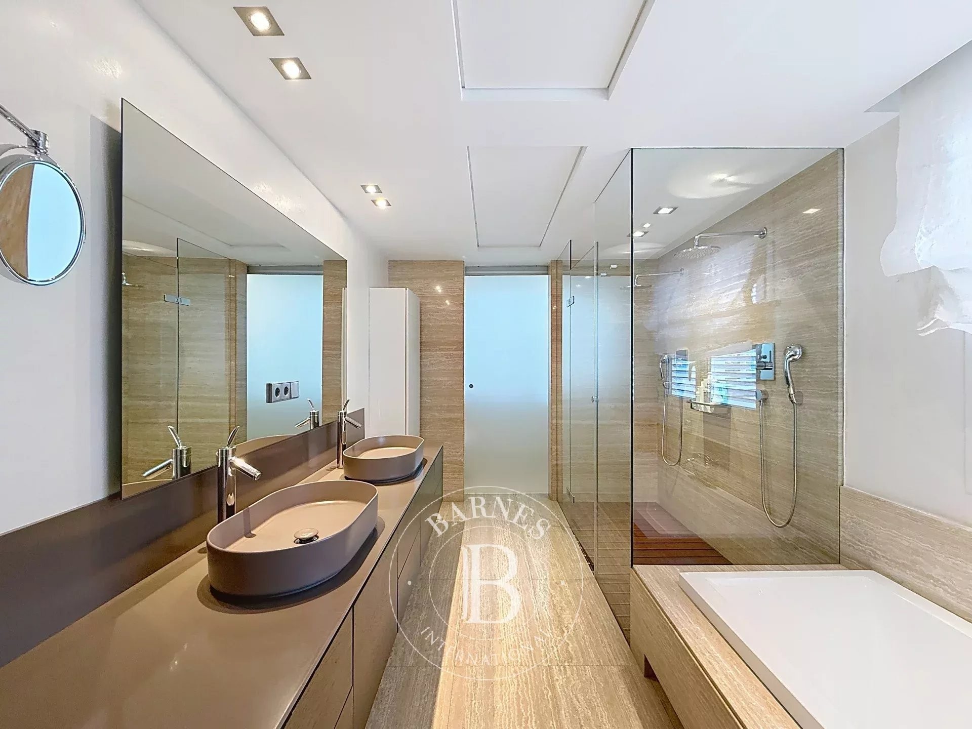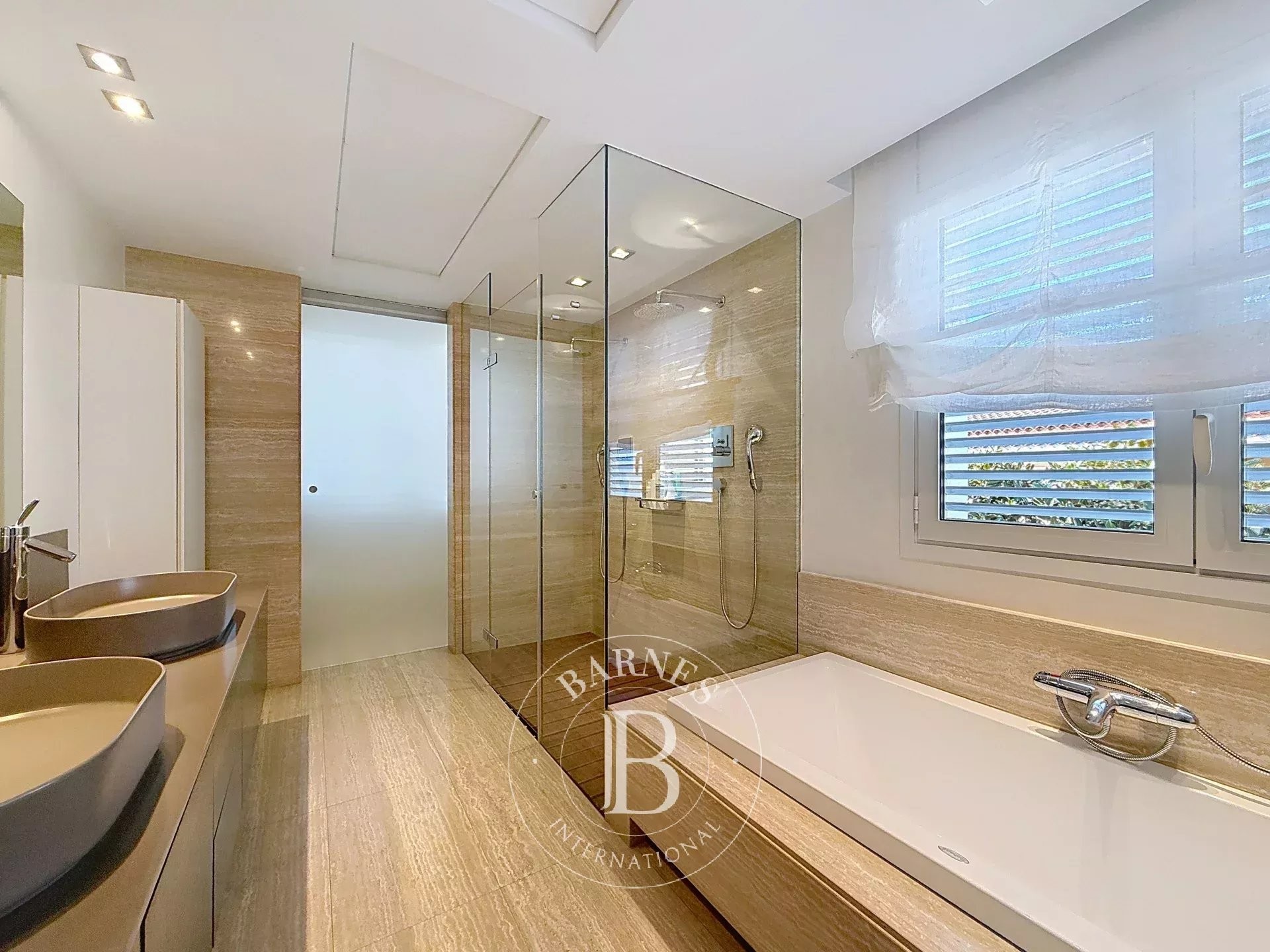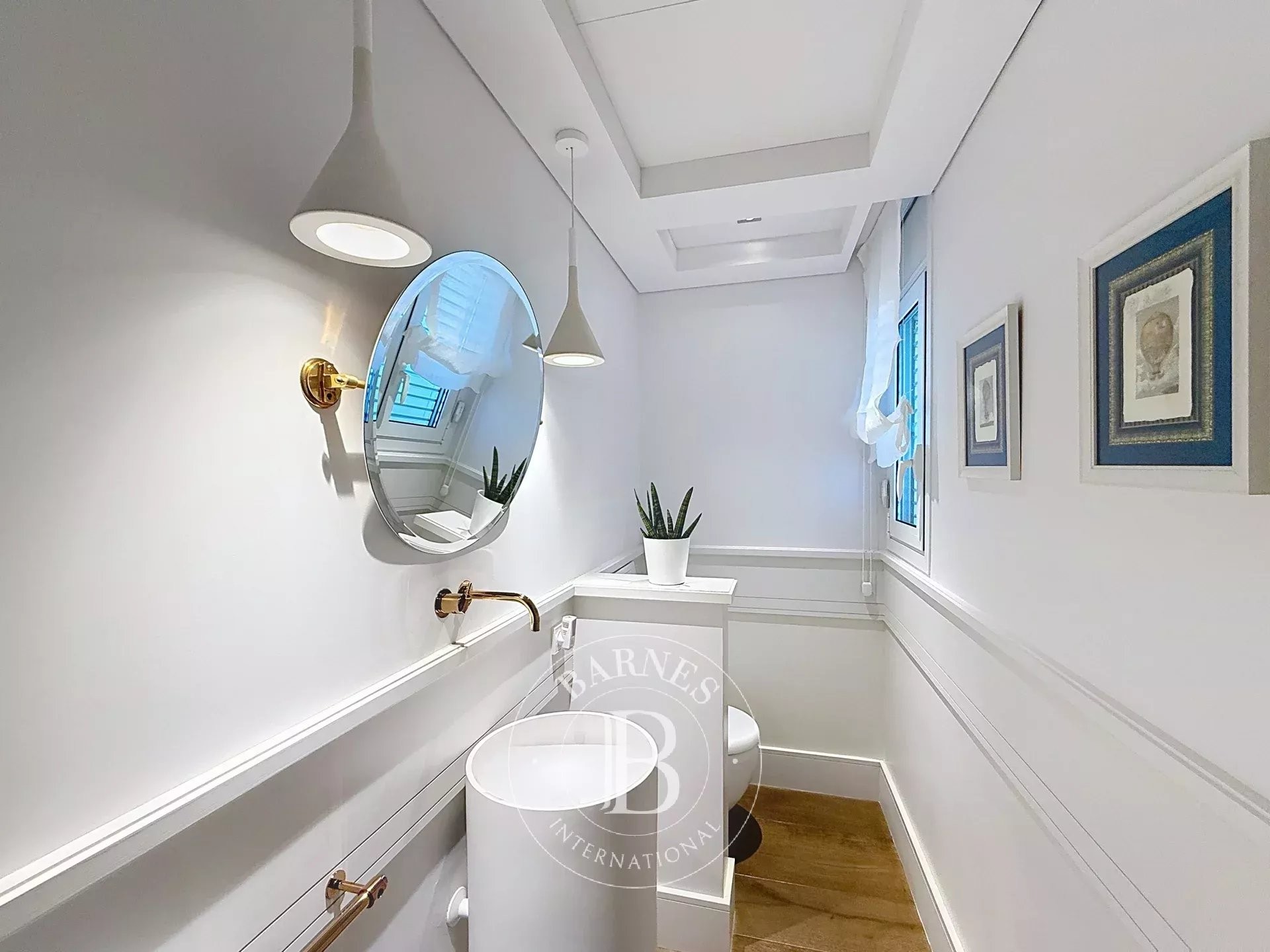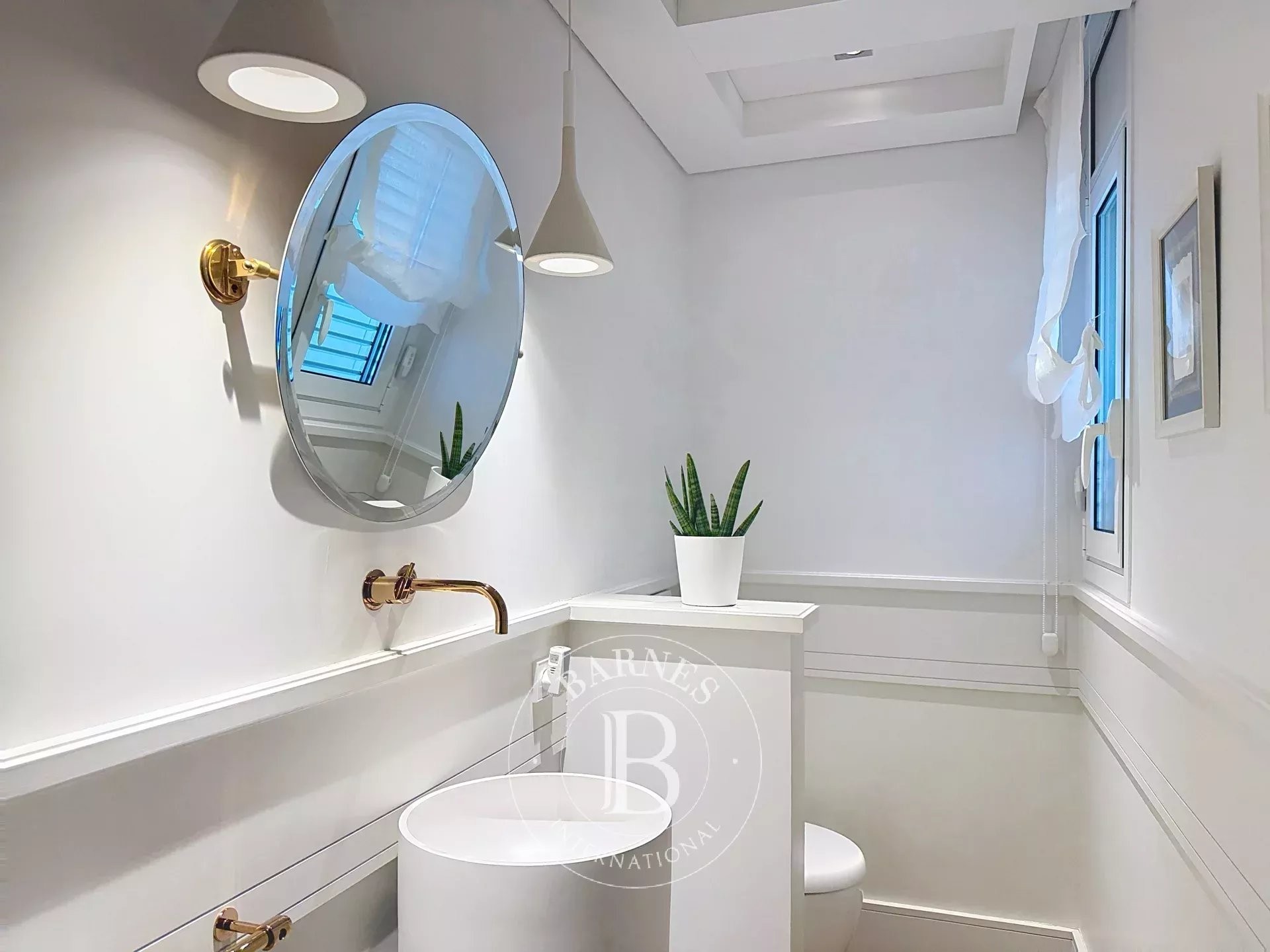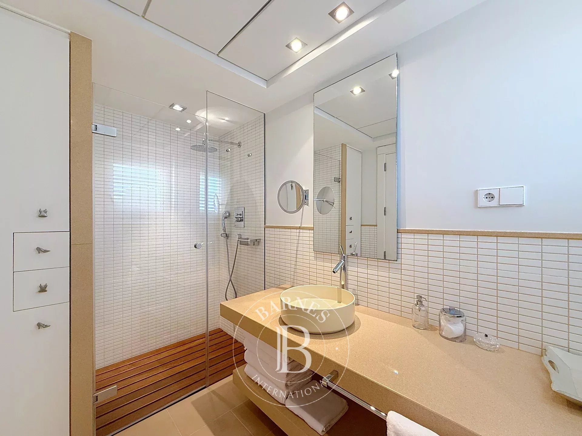 La planta superior se dedica al descanso y al confort más exclusivo. Alberga una biblioteca con chimenea y tres dormitorios espaciosos, cada uno con baño privado. La suite principal sobresale por su vestidor, piscina interior, vapor-ducha y solárium, ofreciendo un retiro de lujo donde cada detalle ha sido pensado para el bienestar y la intimidad.