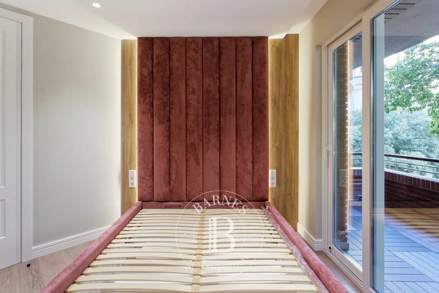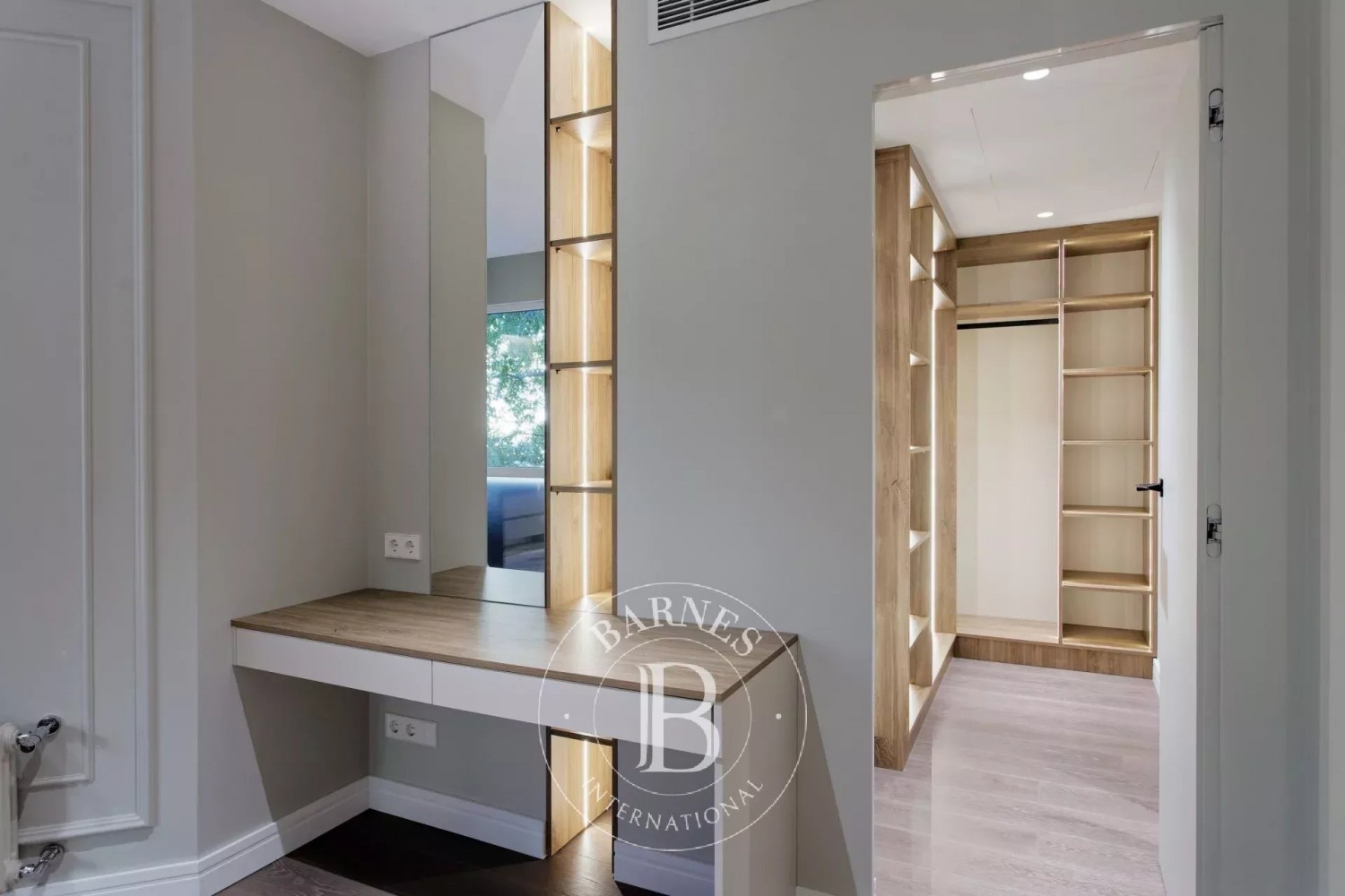 La récente rénovation a doté le logement de matériaux et finitions haut de gamme, parmi lesquels se distinguent les sols en parquet de chêne naturel, apportant chaleur et élégance. En termes de confort, l’appartement est équipé de la climatisation réversible, avec un système de conduits dans le salon et la suite principale (Mitsubishi) et des splits indépendants dans les autres chambres, permettant un réglage individualisé dans chaque espace. Le chauffage au gaz naturel est assuré par une chaudière Bosch, complétée par des radiateurs design IRSAP Tesi, qui allient efficacité et sophistication.