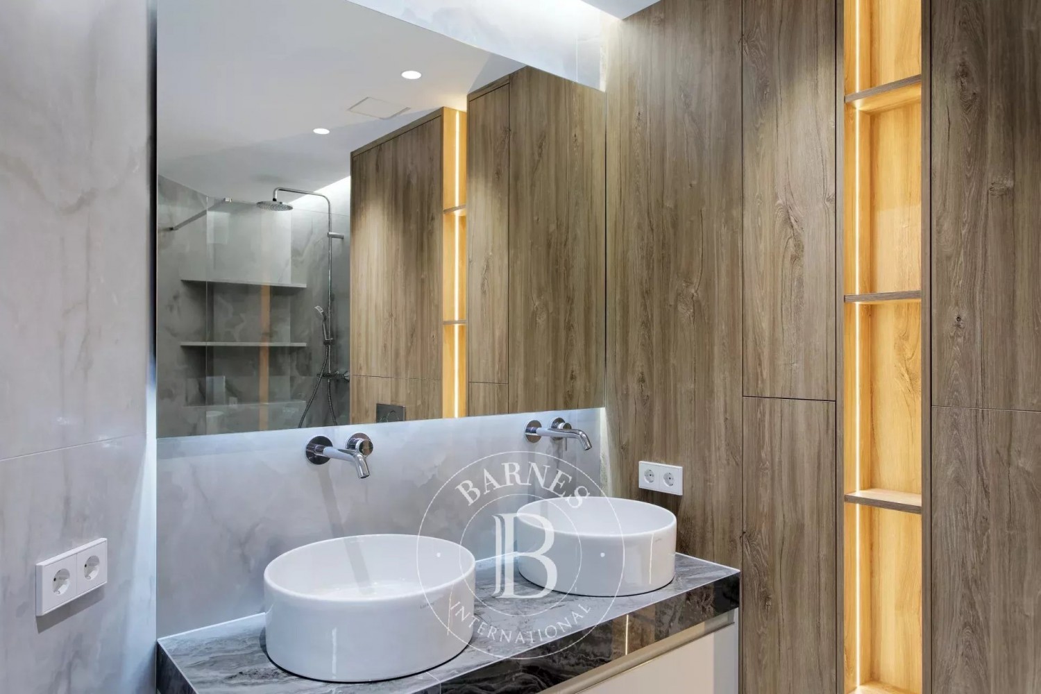 Dans l’espace nuit, la propriété dispose d’une suite parentale comprenant une salle de bain complète, un dressing et un accès exclusif à la seconde terrasse. De plus, elle offre deux chambres doubles supplémentaires, toutes deux extérieures, qui partagent une deuxième salle de bain complète. Pour plus de confort, un WC invité vient compléter l’agencement de l’appartement.