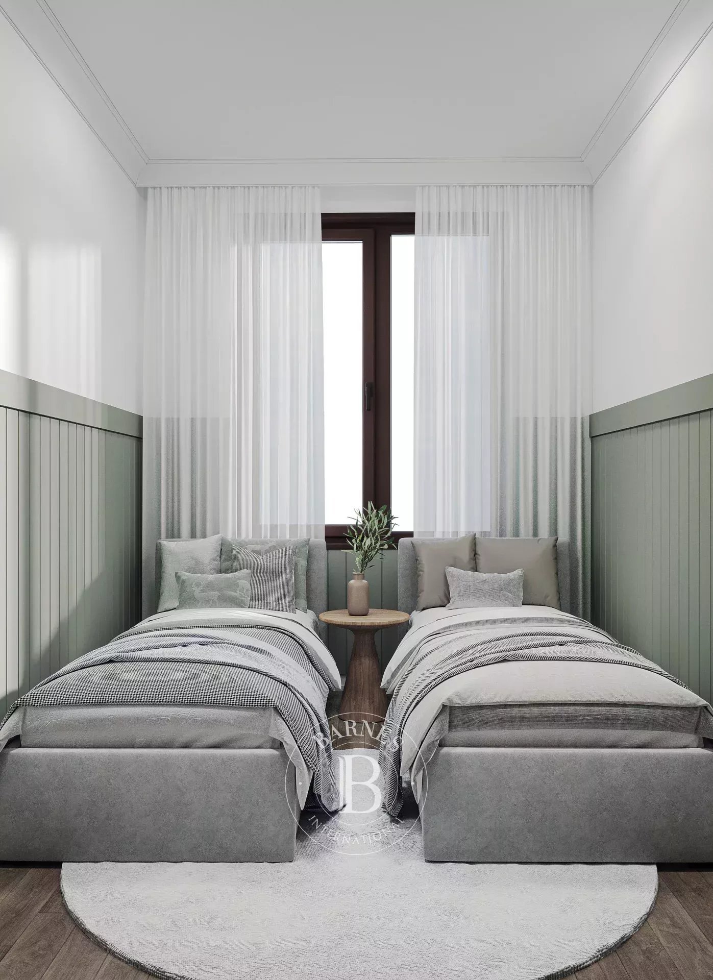 Une proposition d’aménagement intérieur prévoit deux ou trois chambres lumineuses, conçues pour offrir un confort et une intimité maximum, ainsi que deux salles de bain de style contemporain, reflétant une esthétique soignée, fonctionnelle et élégante.