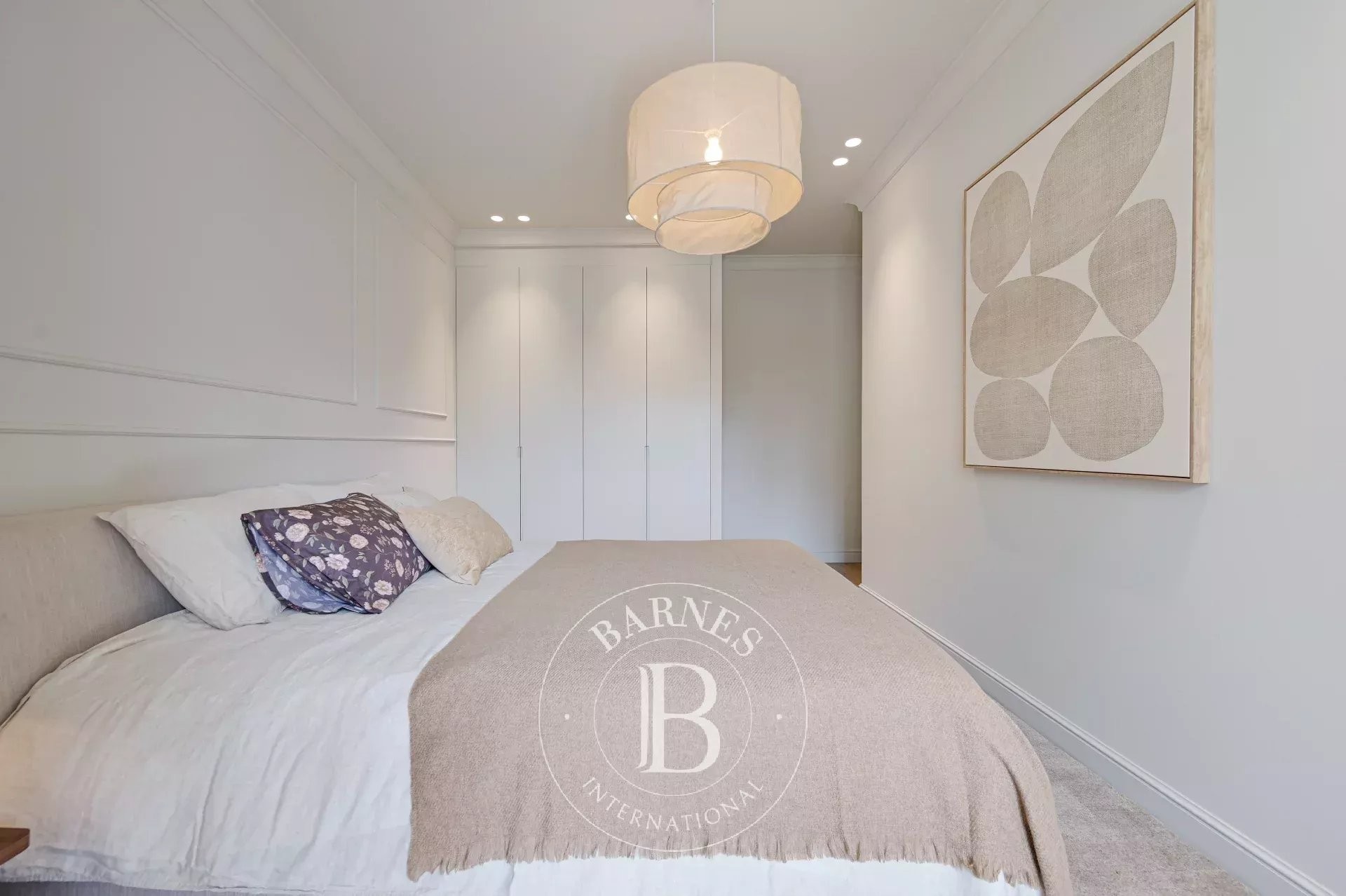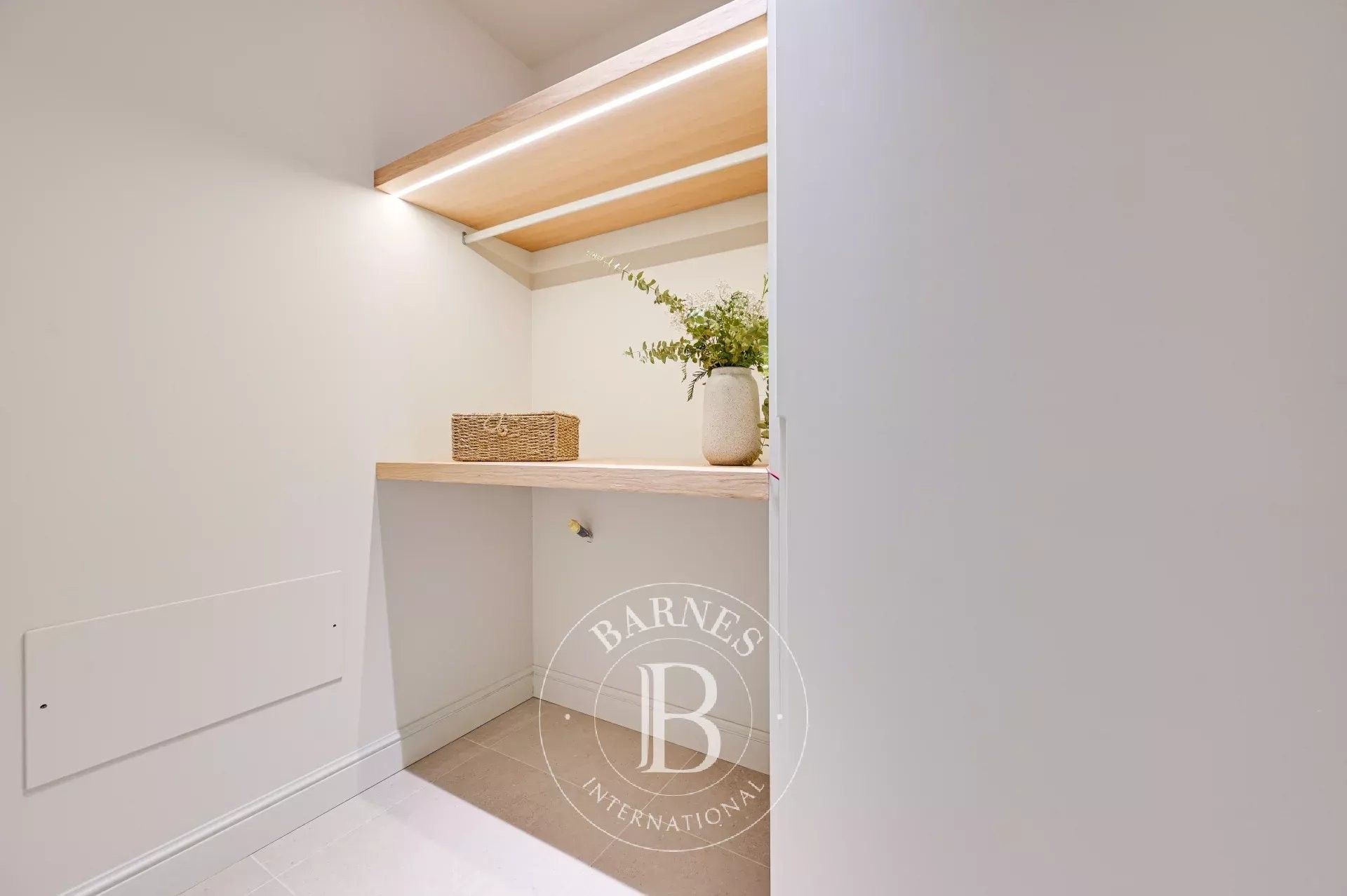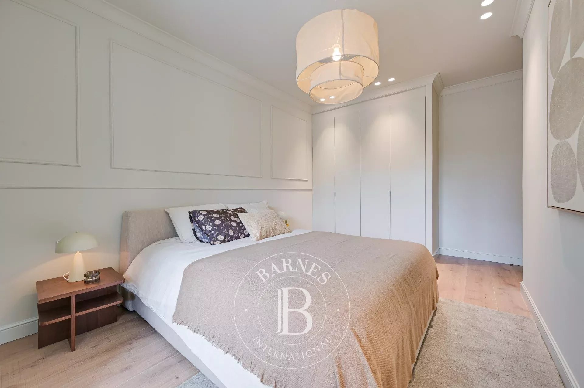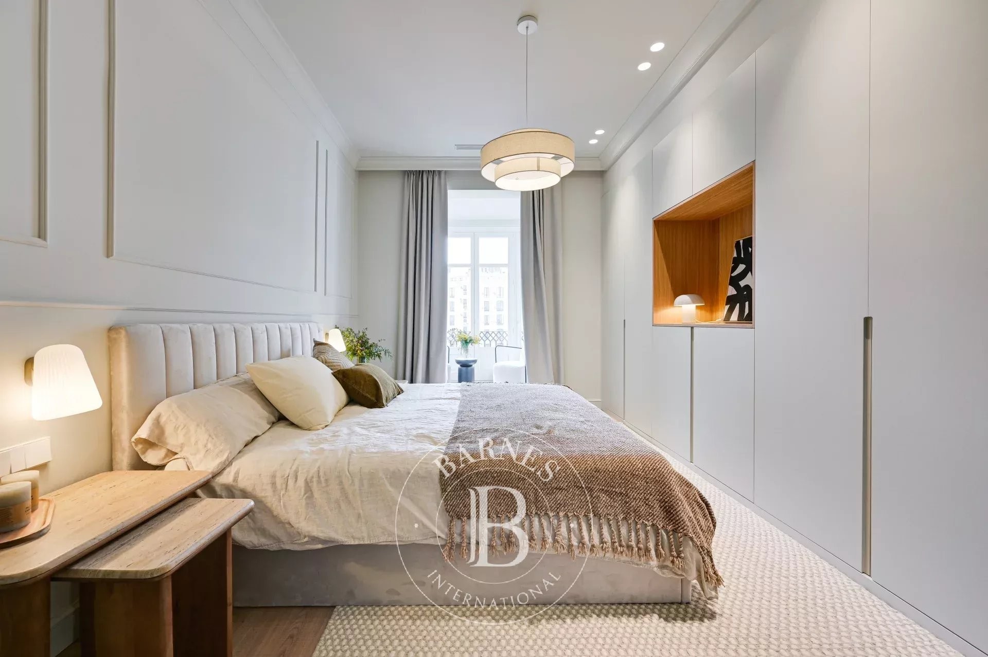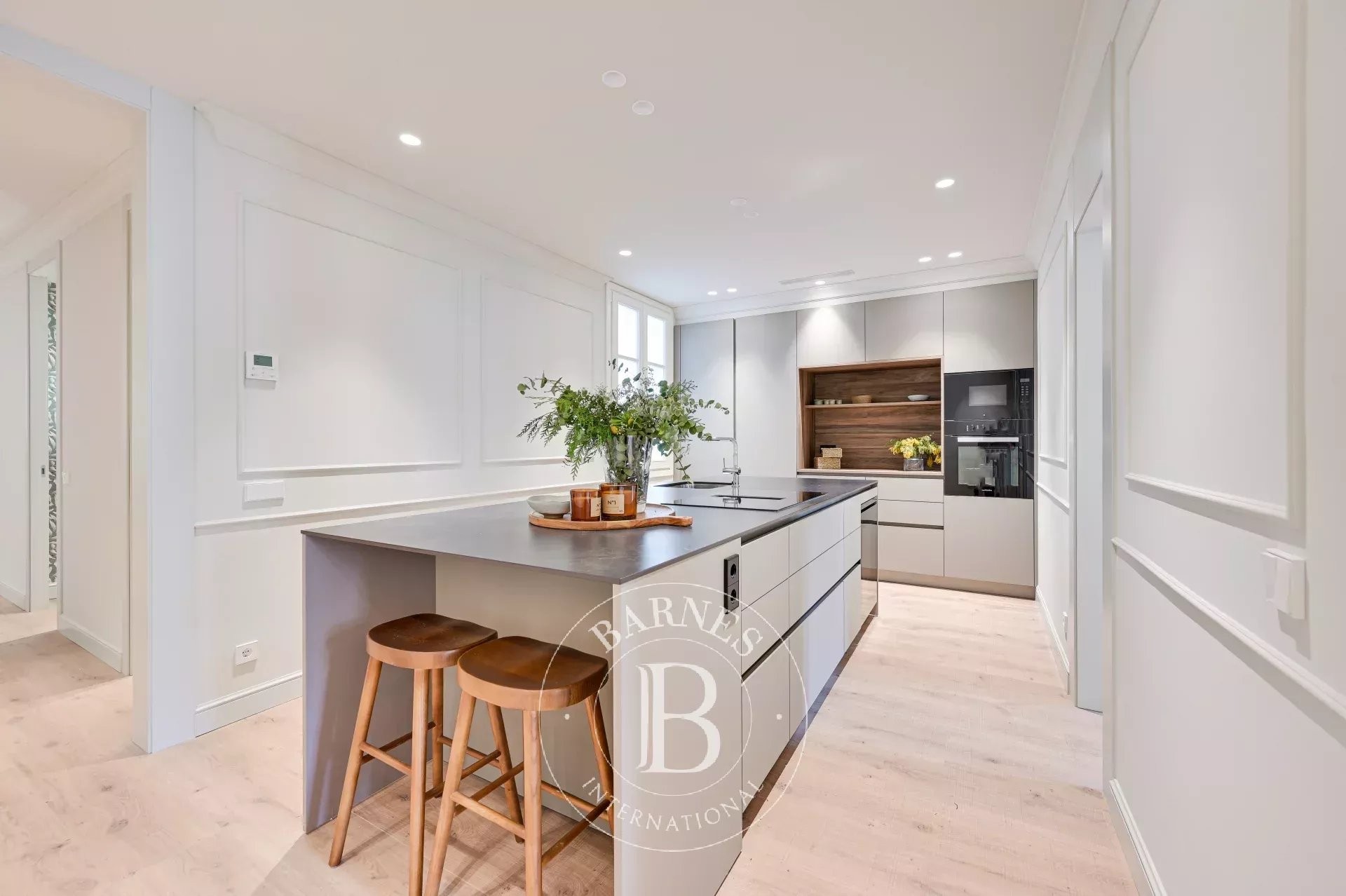 Deux balcons et une galerie vitrée inondent les espaces de lumière naturelle, mettant en valeur les parquets, les hauts plafonds et les moulures d’origine, témoins du charme moderniste de l’immeuble.