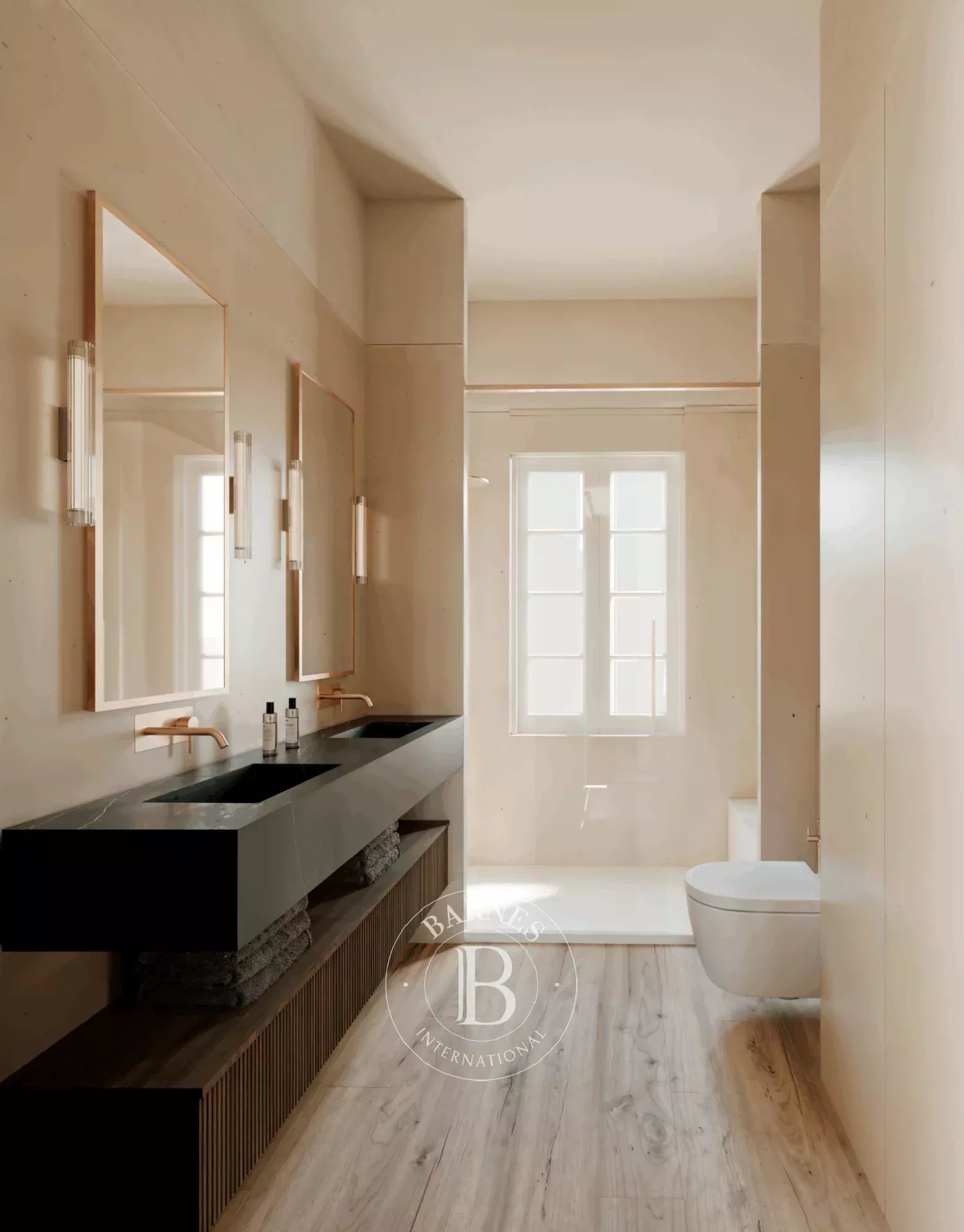 La partie nuit comprend quatre chambres doubles, dont une magnifique suite parentale avec salle de bain privative, ainsi que deux autres salles de bain complètes, toutes réalisées avec un design raffiné et des matériaux de première qualité.