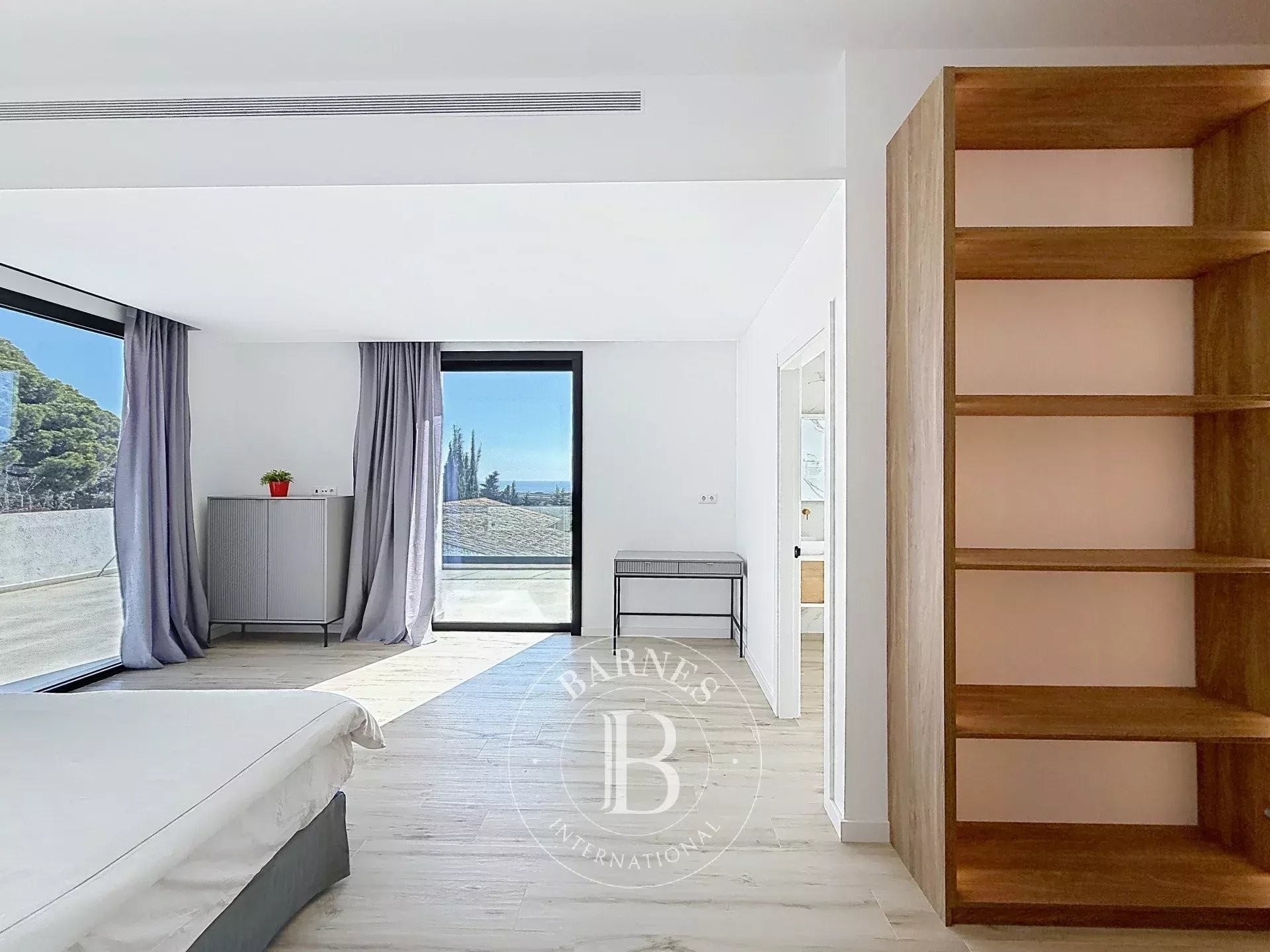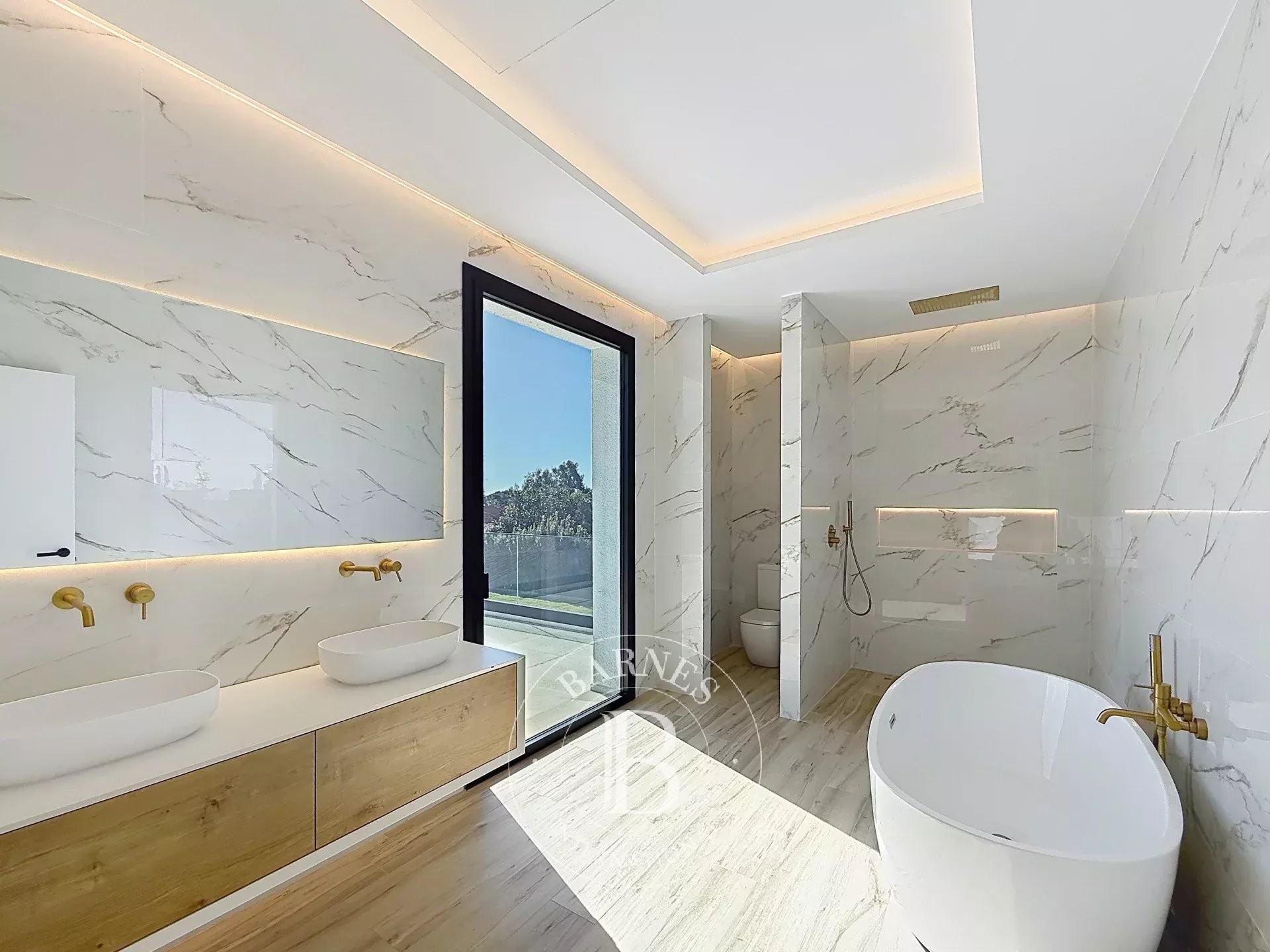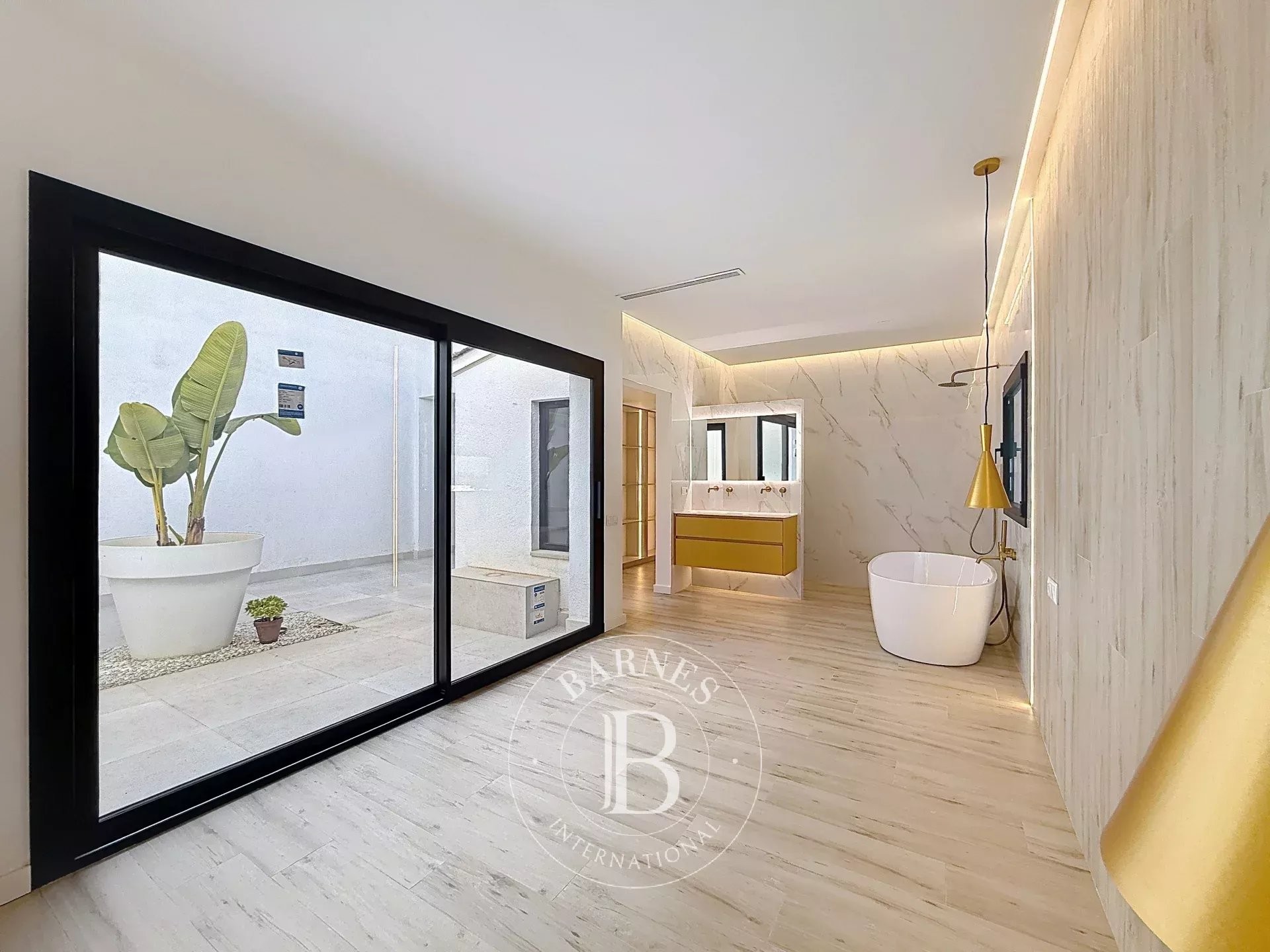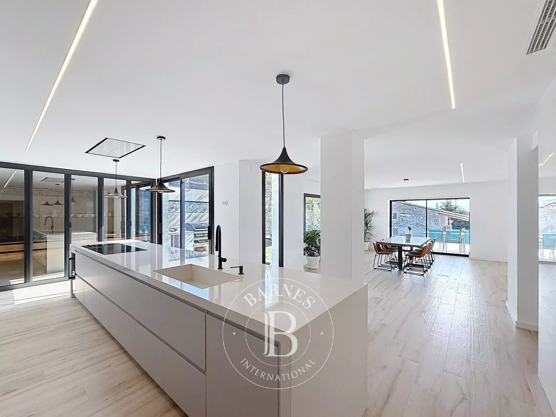 La maison principale au rez-de-chaussée comprend la suite parentale, un hall d'entrée, un salon-salle à manger, une cuisine ouverte, des toilettes pour invités, une buanderie, un cellier et un bureau. À l'étage, il y a 4 chambres avec salles de bains et terrasses.