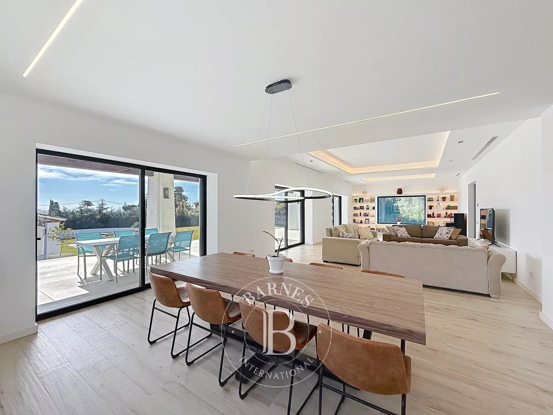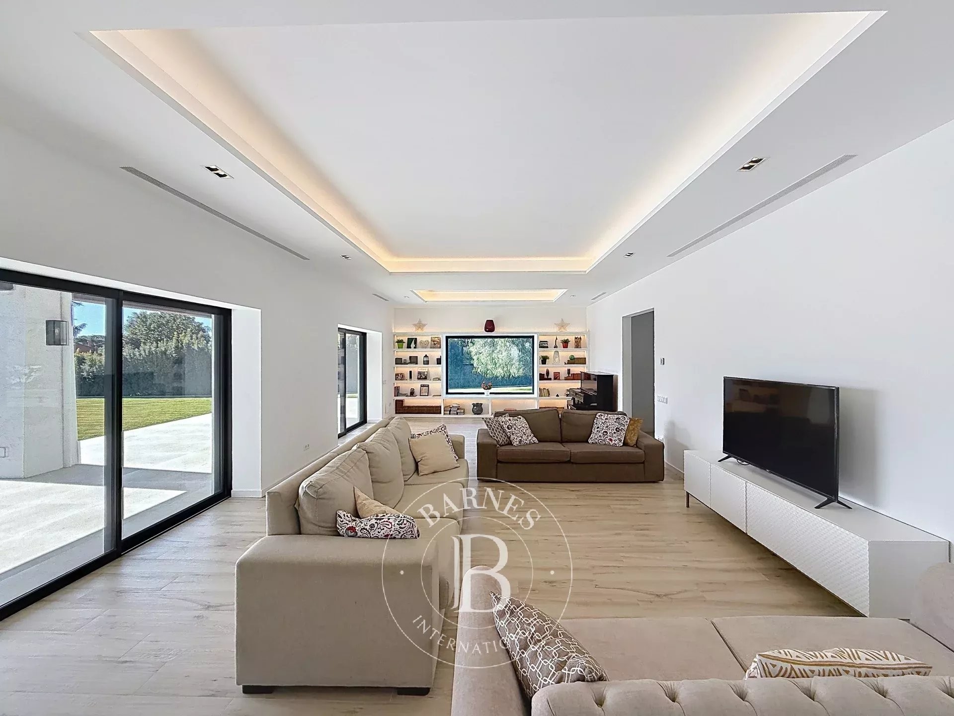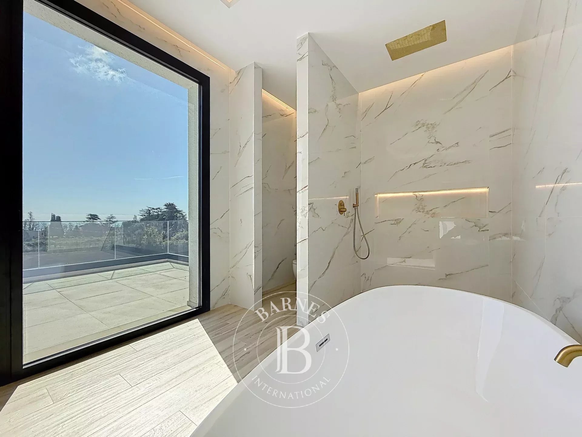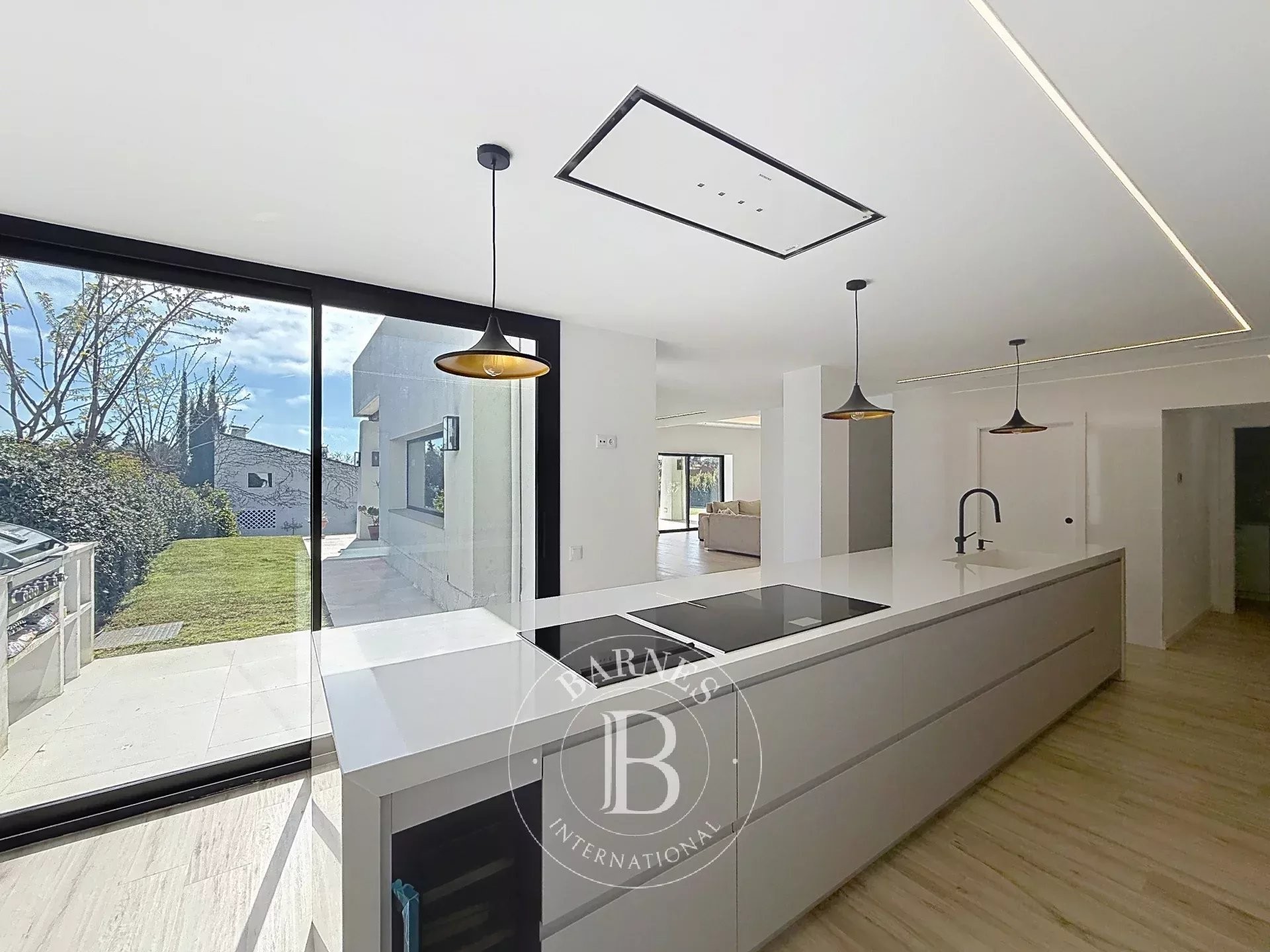 La maison principale au rez-de-chaussée comprend la suite parentale, un hall d'entrée, un salon-salle à manger, une cuisine ouverte, des toilettes pour invités, une buanderie, un cellier et un bureau. À l'étage, il y a 4 chambres avec salles de bains et terrasses.