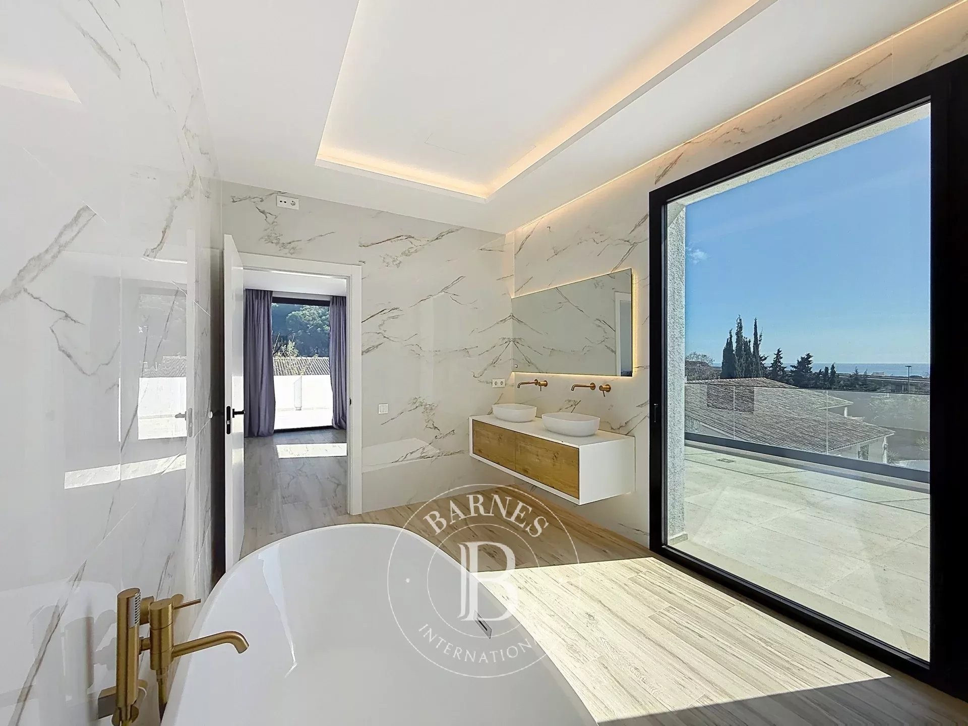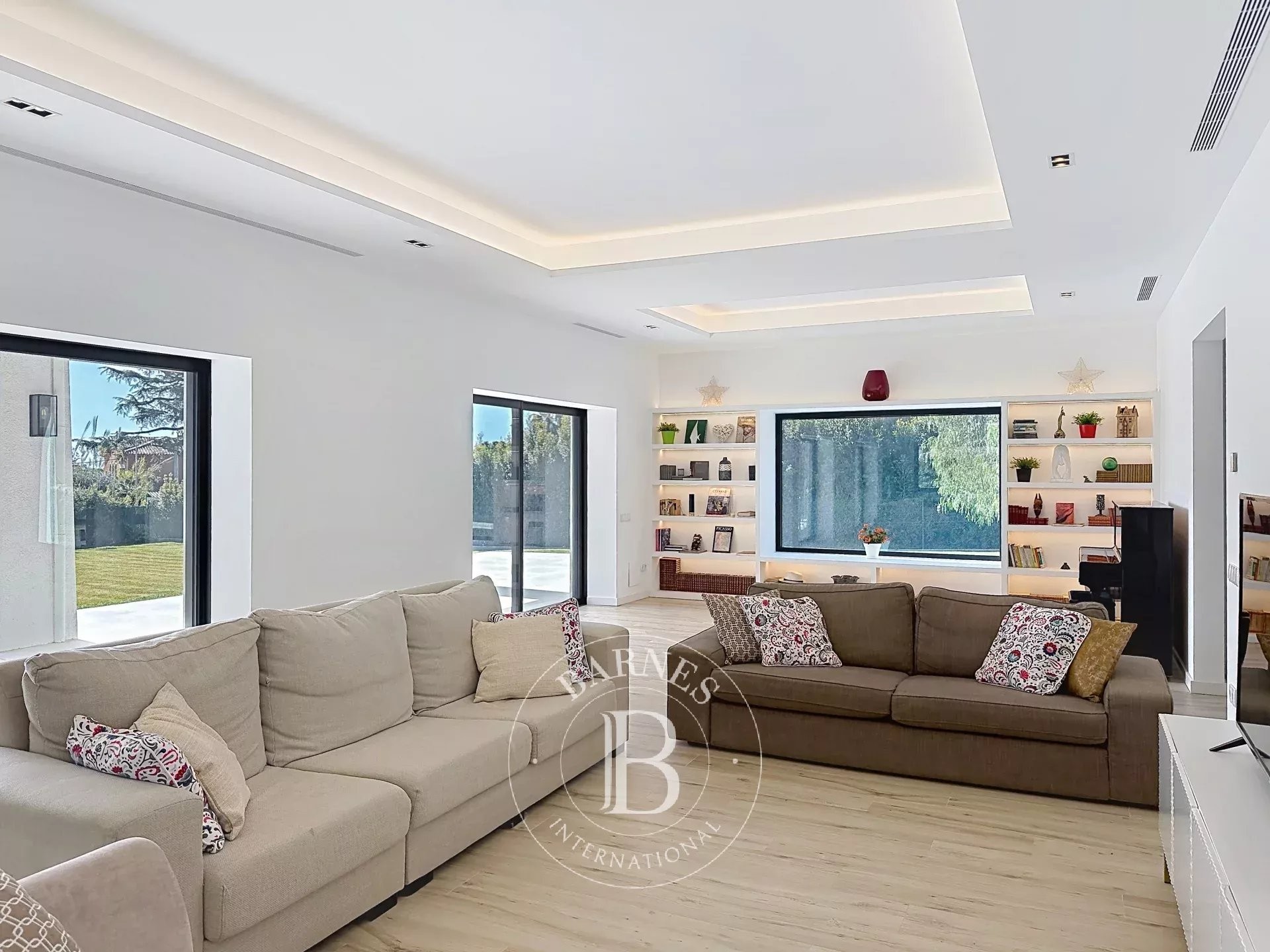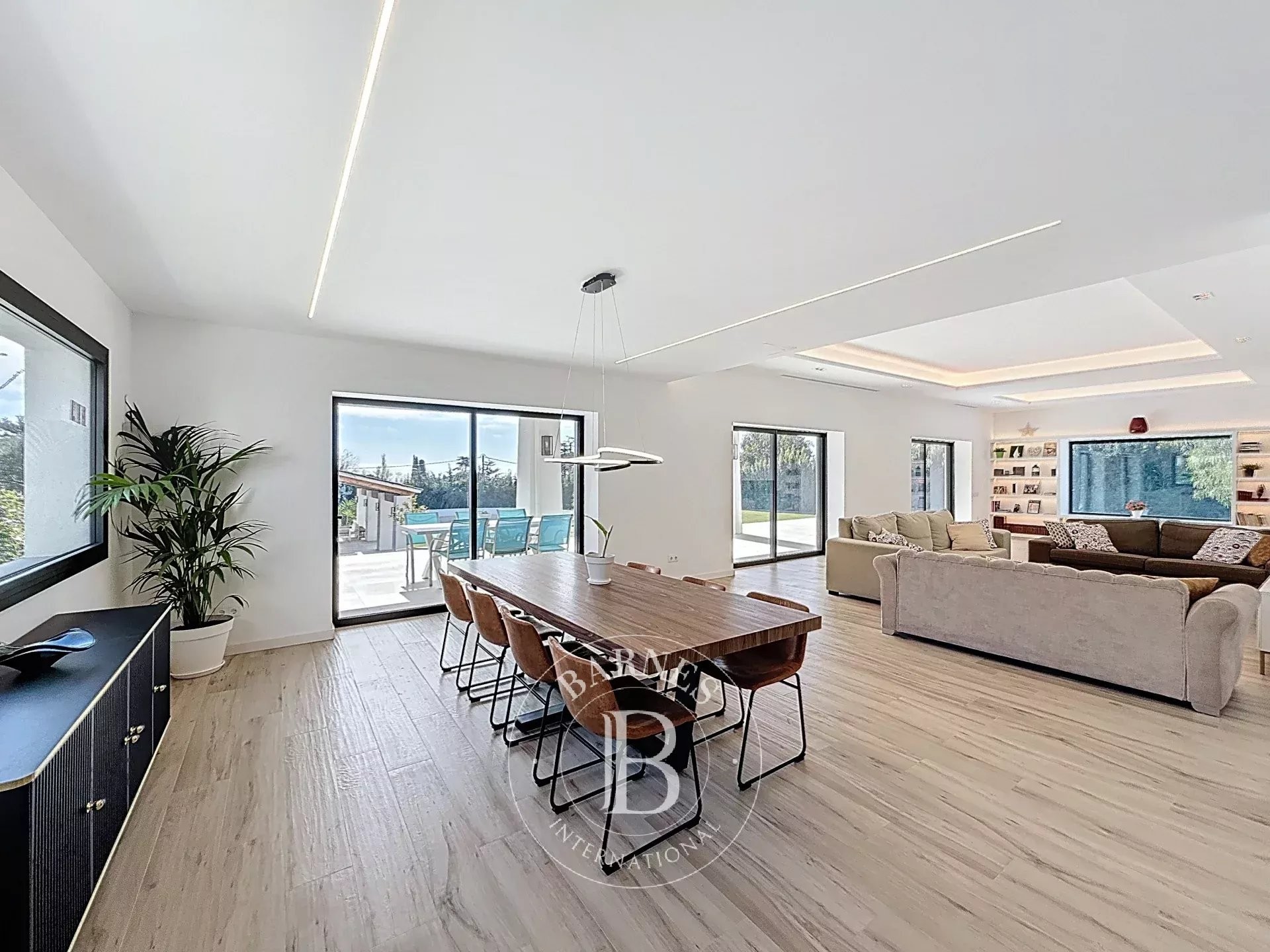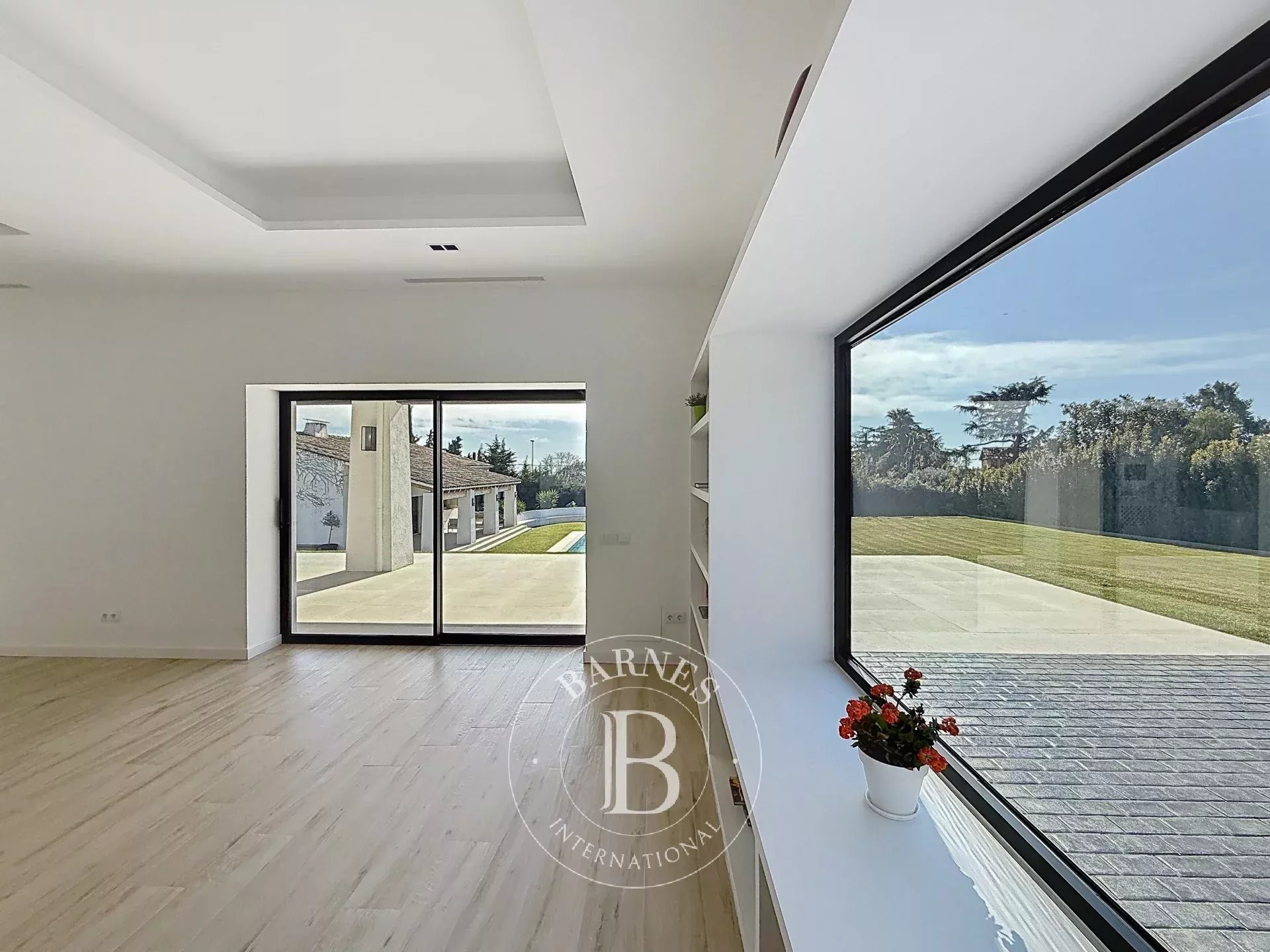 La maison principale au rez-de-chaussée comprend la suite parentale, un hall d'entrée, un salon-salle à manger, une cuisine ouverte, des toilettes pour invités, une buanderie, un cellier et un bureau. À l'étage, il y a 4 chambres avec salles de bains et terrasses.