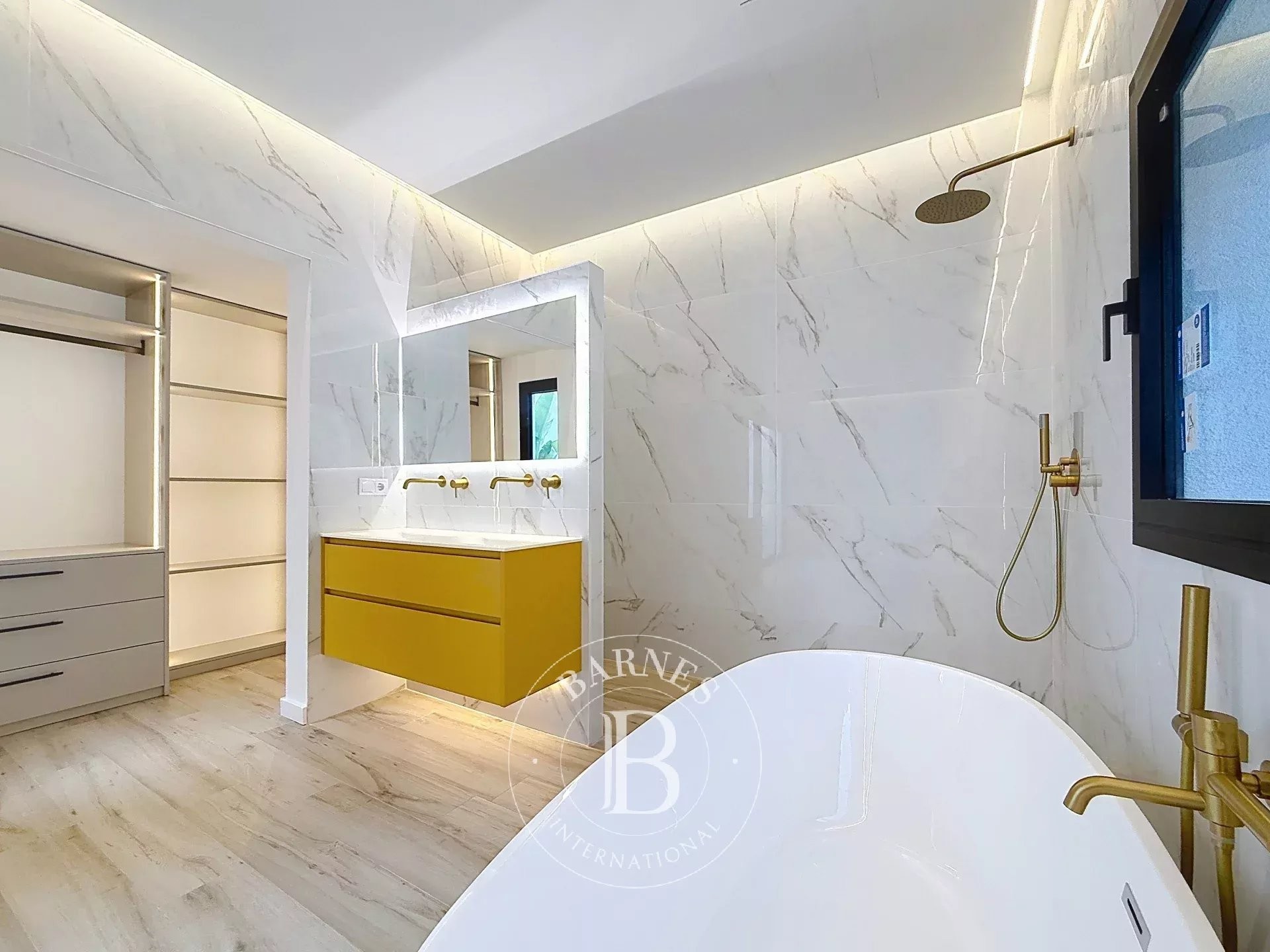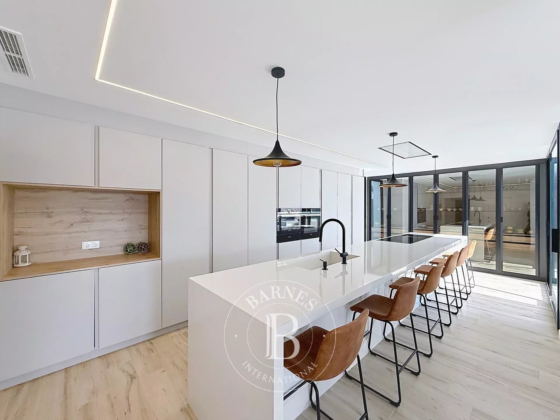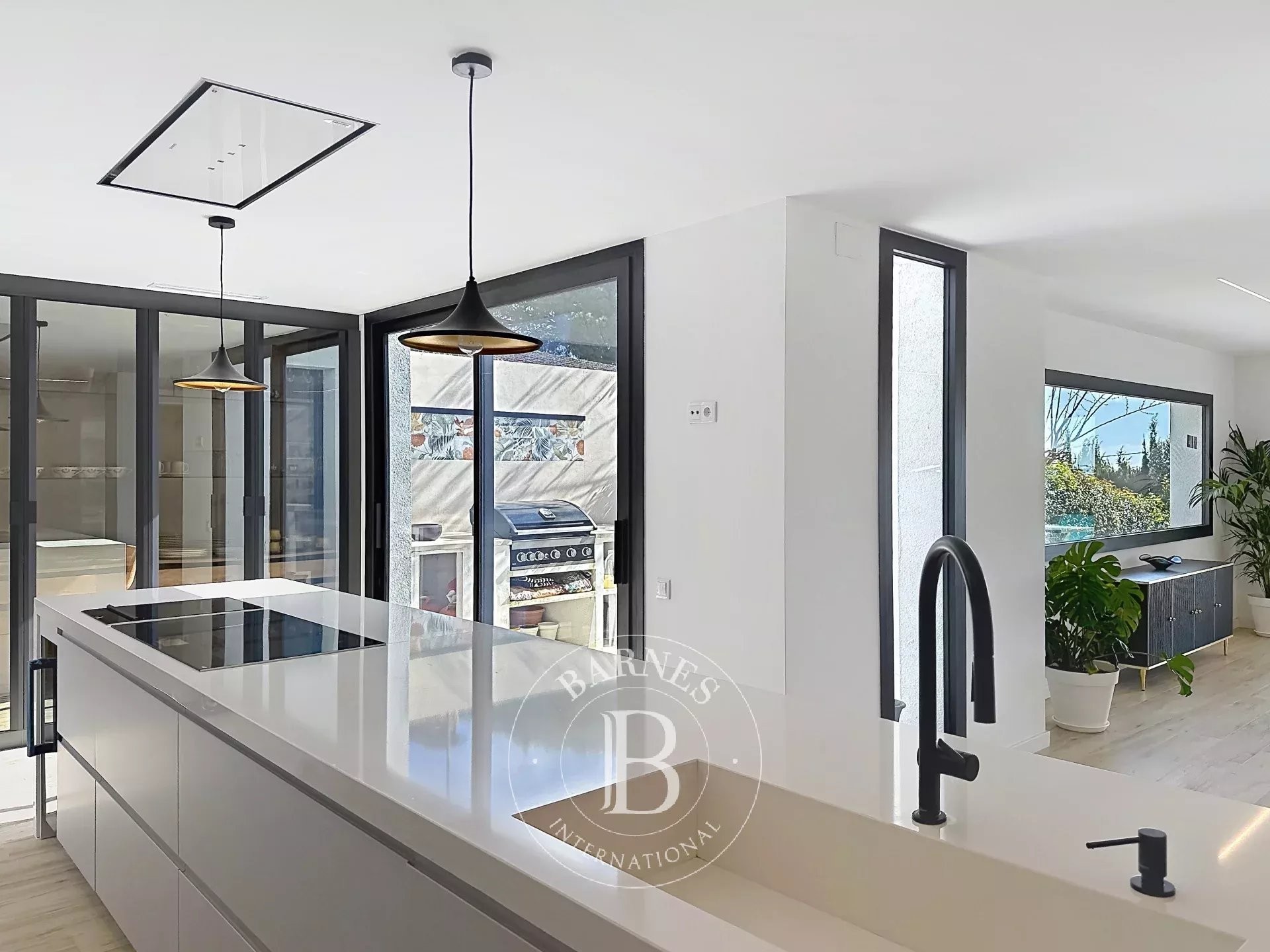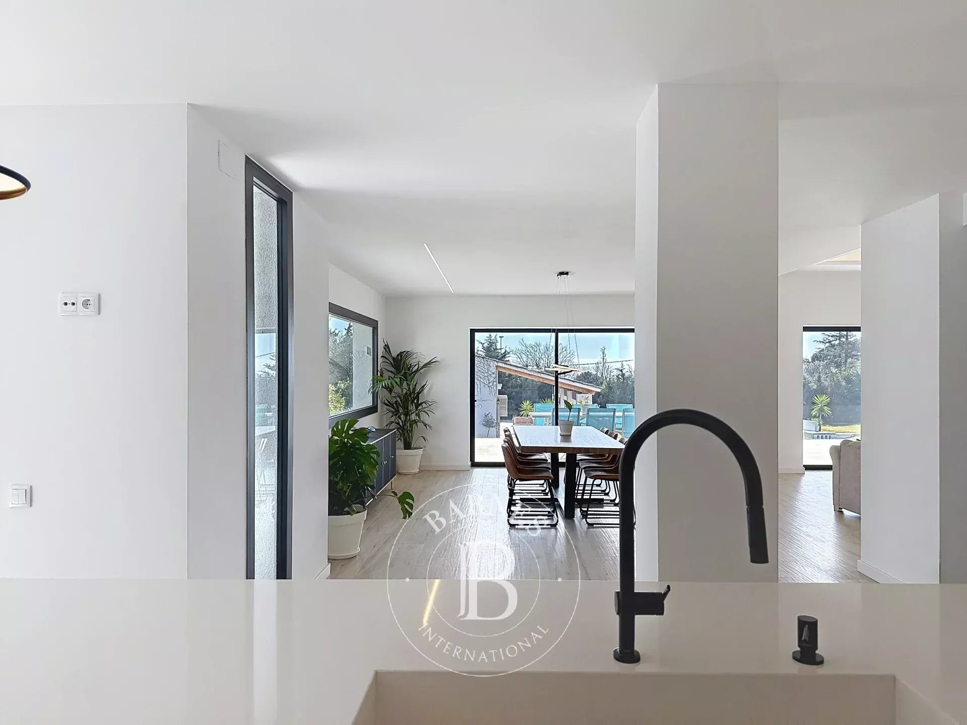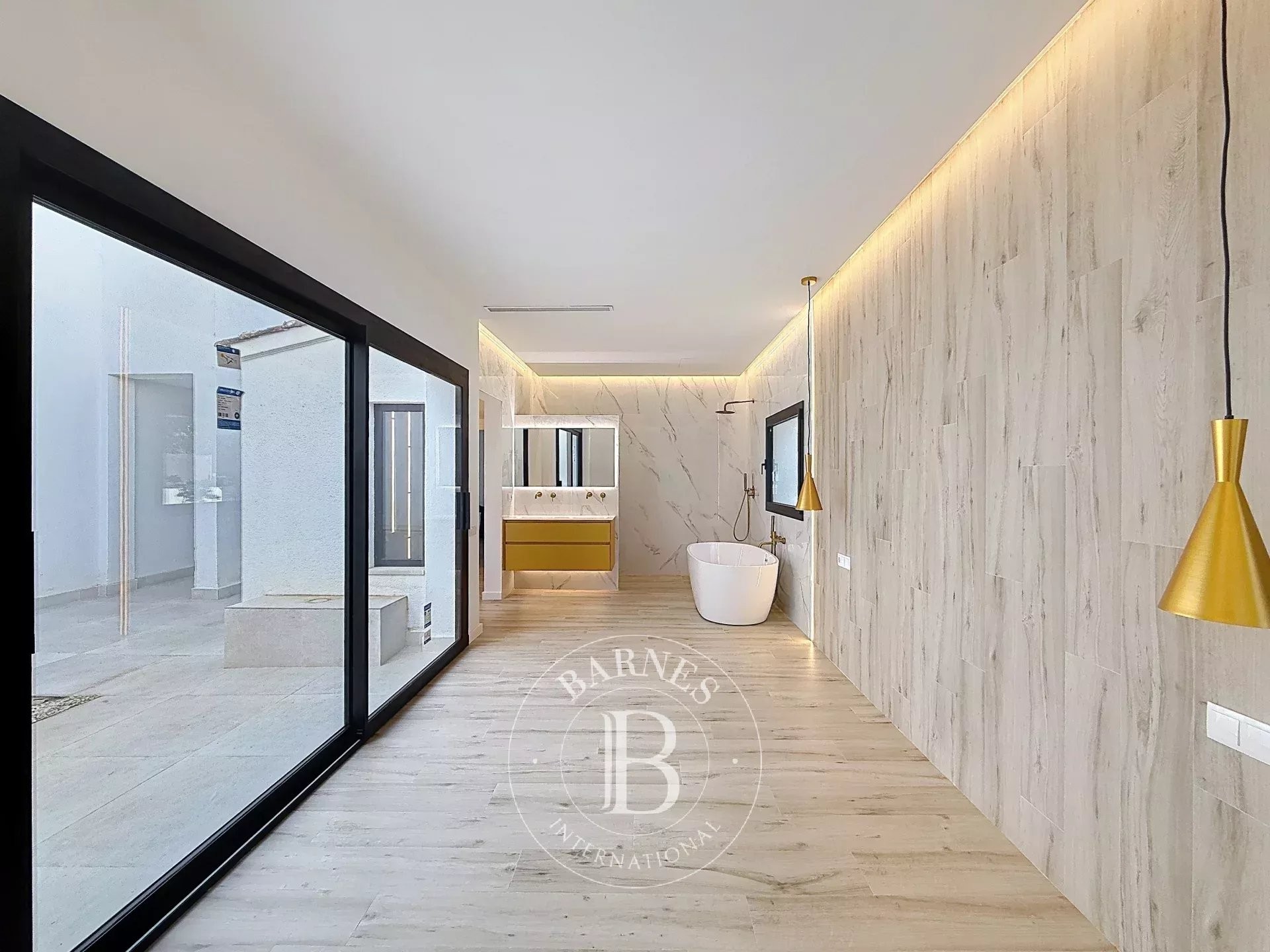 La maison a été rénovée avec des matériaux de haute qualité. Elle se distingue par son éclairage LED intérieur et extérieur conçu pour offrir une beauté maximale, une ambiance chaleureuse et un confort optimal. Elle est équipée de domotique, de sols en grès uniformes dans toute la maison, ainsi que sur les porches, les escaliers et autour de la piscine, de menuiseries noires avec vitrage thermique, d'une pompe à chaleur aérothermique et de panneaux solaires.