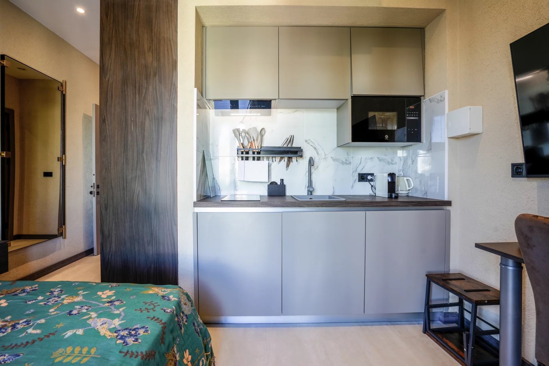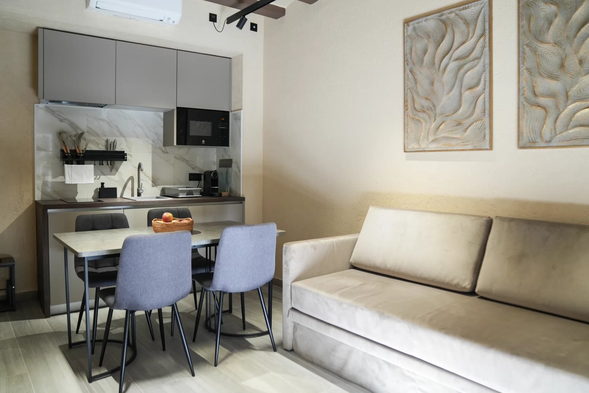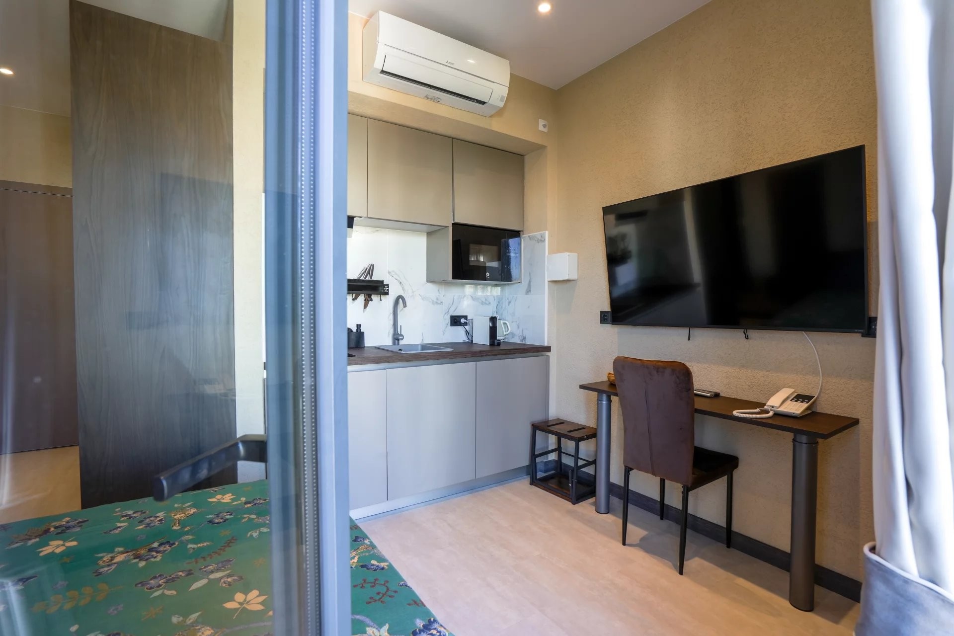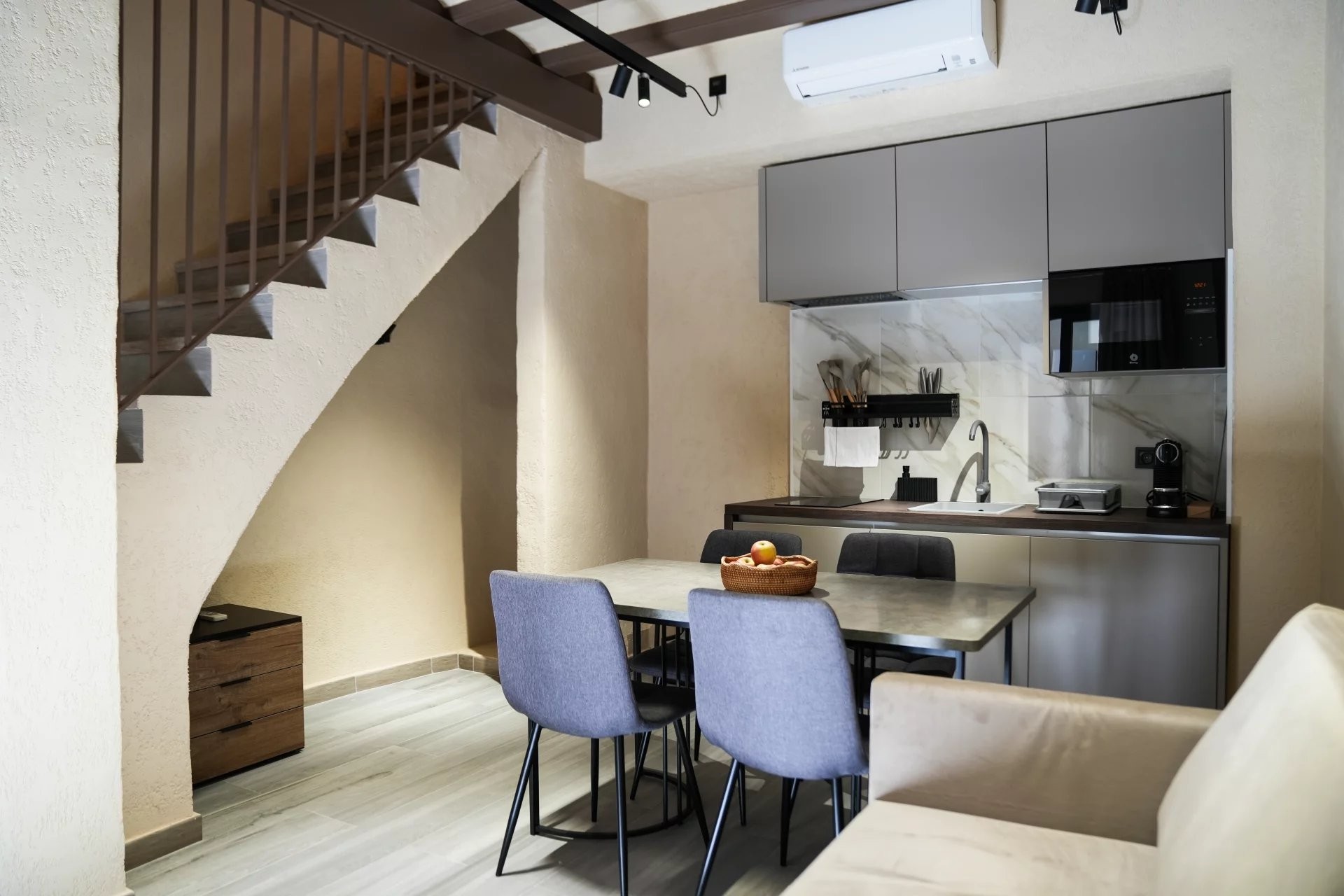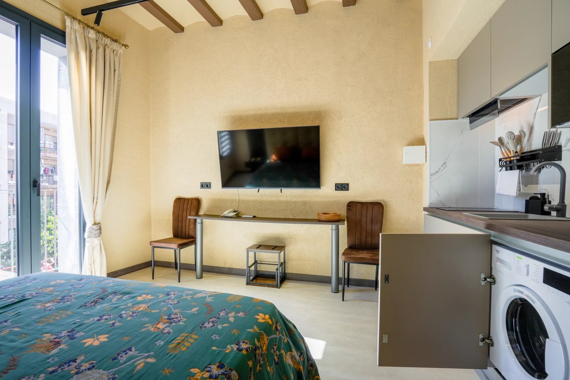Le bâtiment principal comprend six studios élégamment aménagés, pensés pour maximiser confort et fonctionnalité tout en conservant une esthétique chaleureuse et élégante. Complétant l’ensemble, une maison indépendante s’organise autour d’un charmant patio privé, créant un espace paisible et intime qui renforce l’expérience des clients.