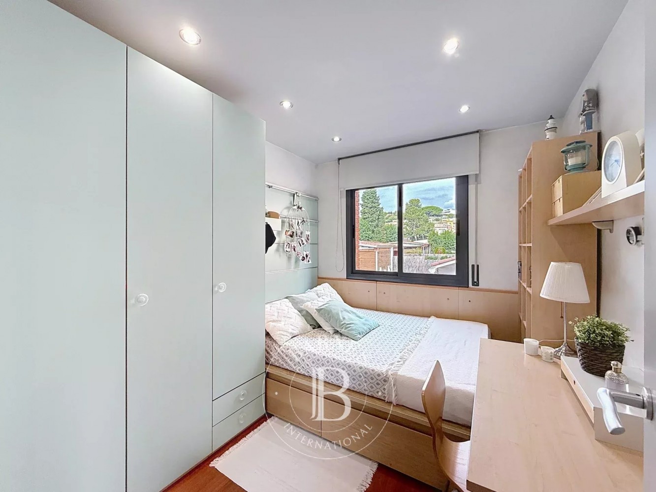 La propriété comprend un garage couvert privé, unique dans le quartier, et dispose du chauffage au gaz naturel et de la climatisation à chaque étage, garantissant un confort absolu toute l’année.