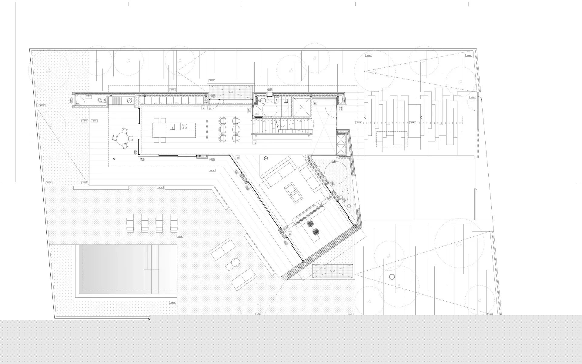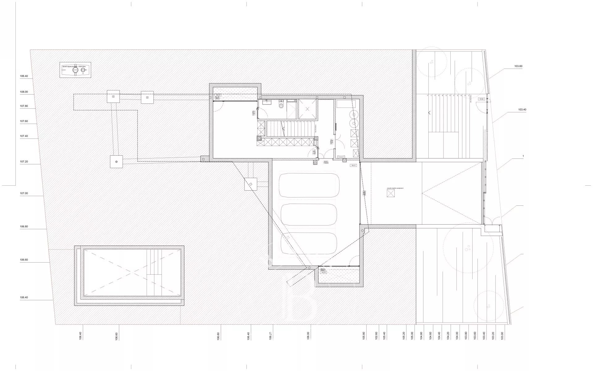Le rez-de-chaussée abrite un garage pouvant accueillir trois véhicules, une salle polyvalente et une salle de bains supplémentaire, offrant de multiples possibilités d'utilisation.